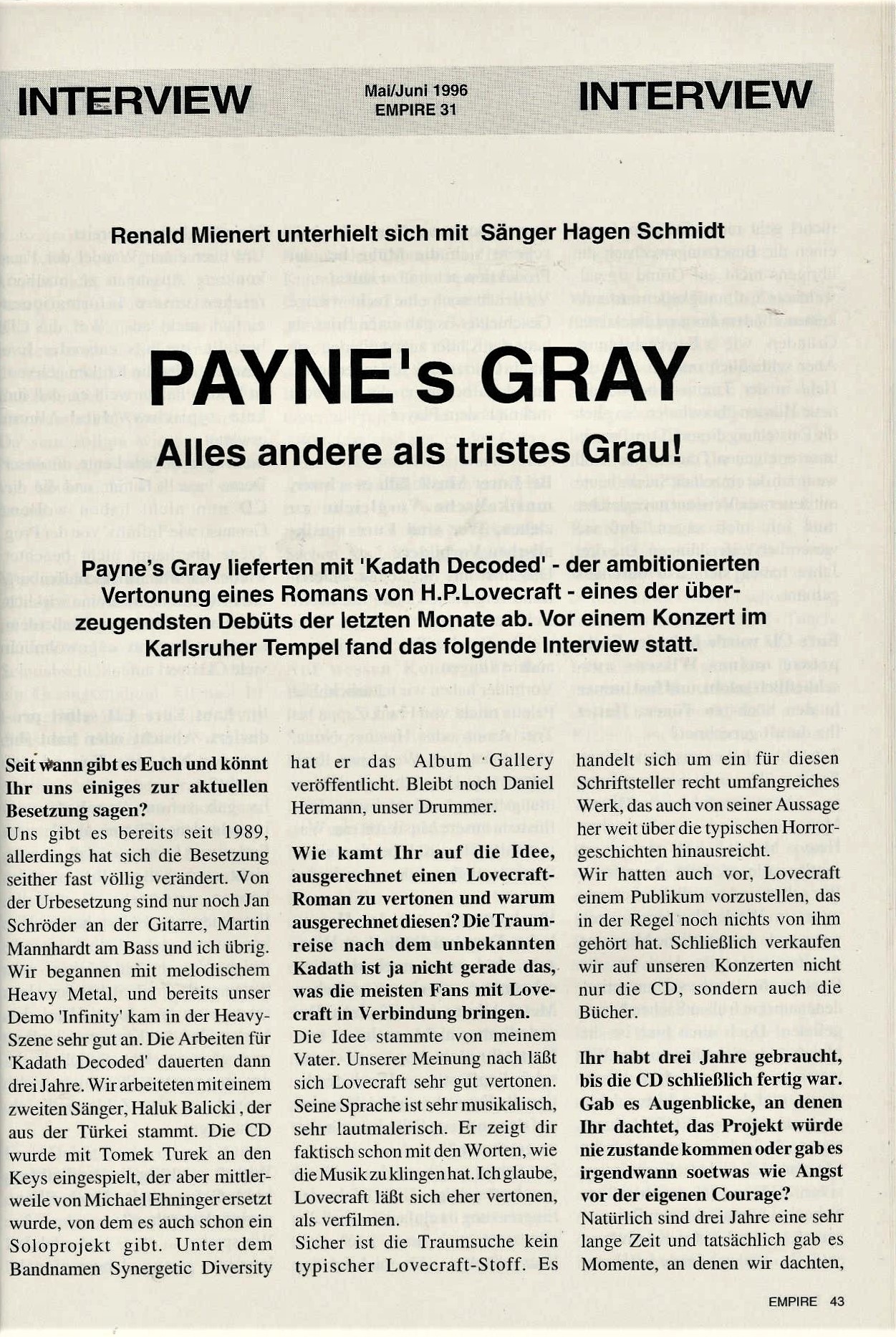 Nach dem Release von ´Kadath Decoded` wollten PAYNE´S GRAY endlich auf Tournee gehen. Aber auch die Fertigstellung des Albums dauerte lange.