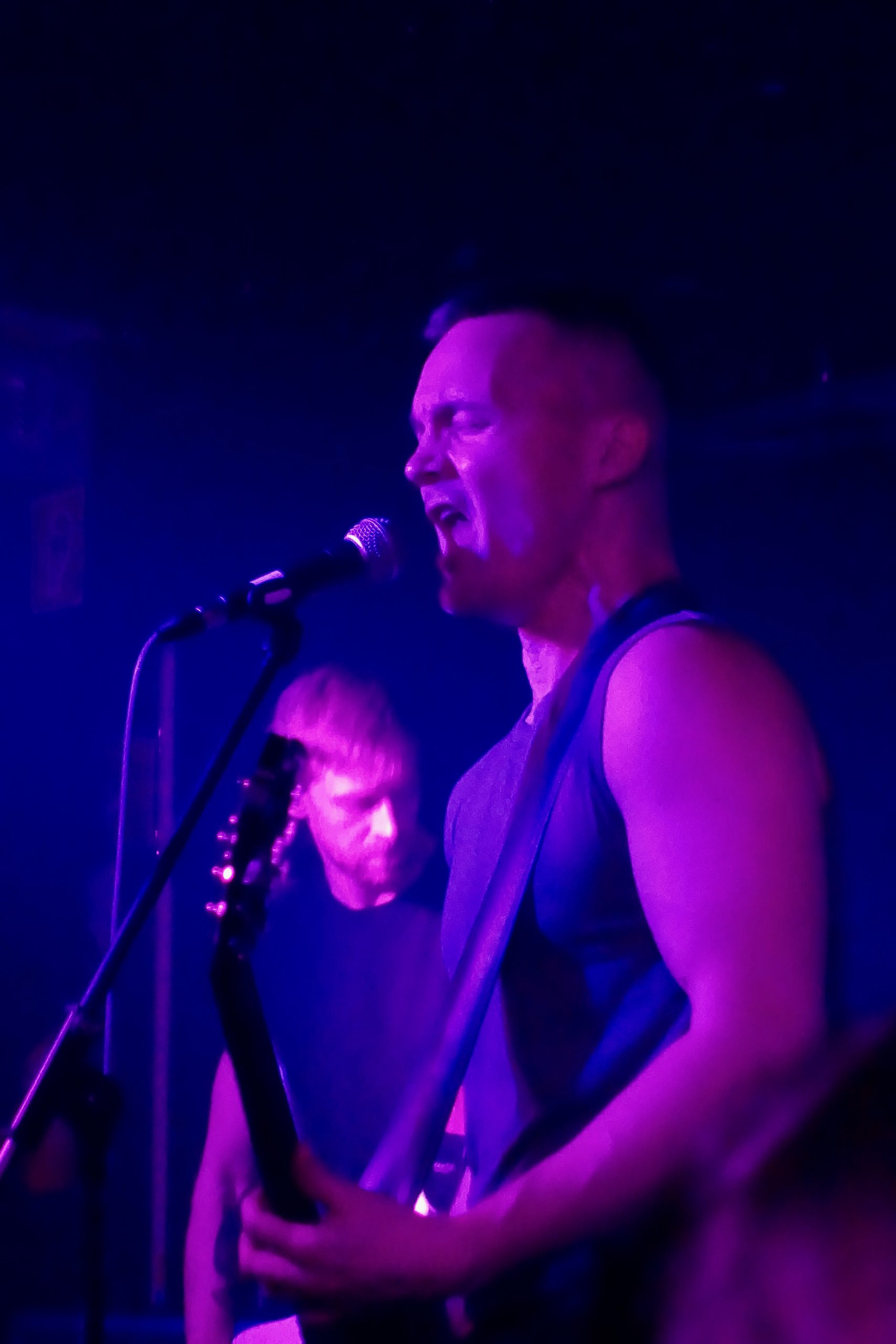 Als zweite entern dann die Lokalmatadoren von DIVISION ZERO die Bühne; sie selbst beschreiben ihren Stil als atmosphärischen Black Metal, man ist geneigt zu ergänzen – auf einer gesunden Hardcorepunk-Basis, gefüttert mit vielen Jahren Deathmetal-Kult, und dazu mit einer gesunden Menge Wut und Energie gespielt. Leider kam ihre neue EP ´Mainades´ nicht pünktlich aus dem Presswerk, so dass ihr Auftritt heute keine echte CD-Release Party wird, was dem Ganzen jedoch keine Abbruch tut – sondern vielmehr einer wird. Man merkt, dass sie hier zu Hause sind, die Fans viele ihrer Songs bereits kennen, und auch die drei neuen mit viel Wohlwollen annehmen.
