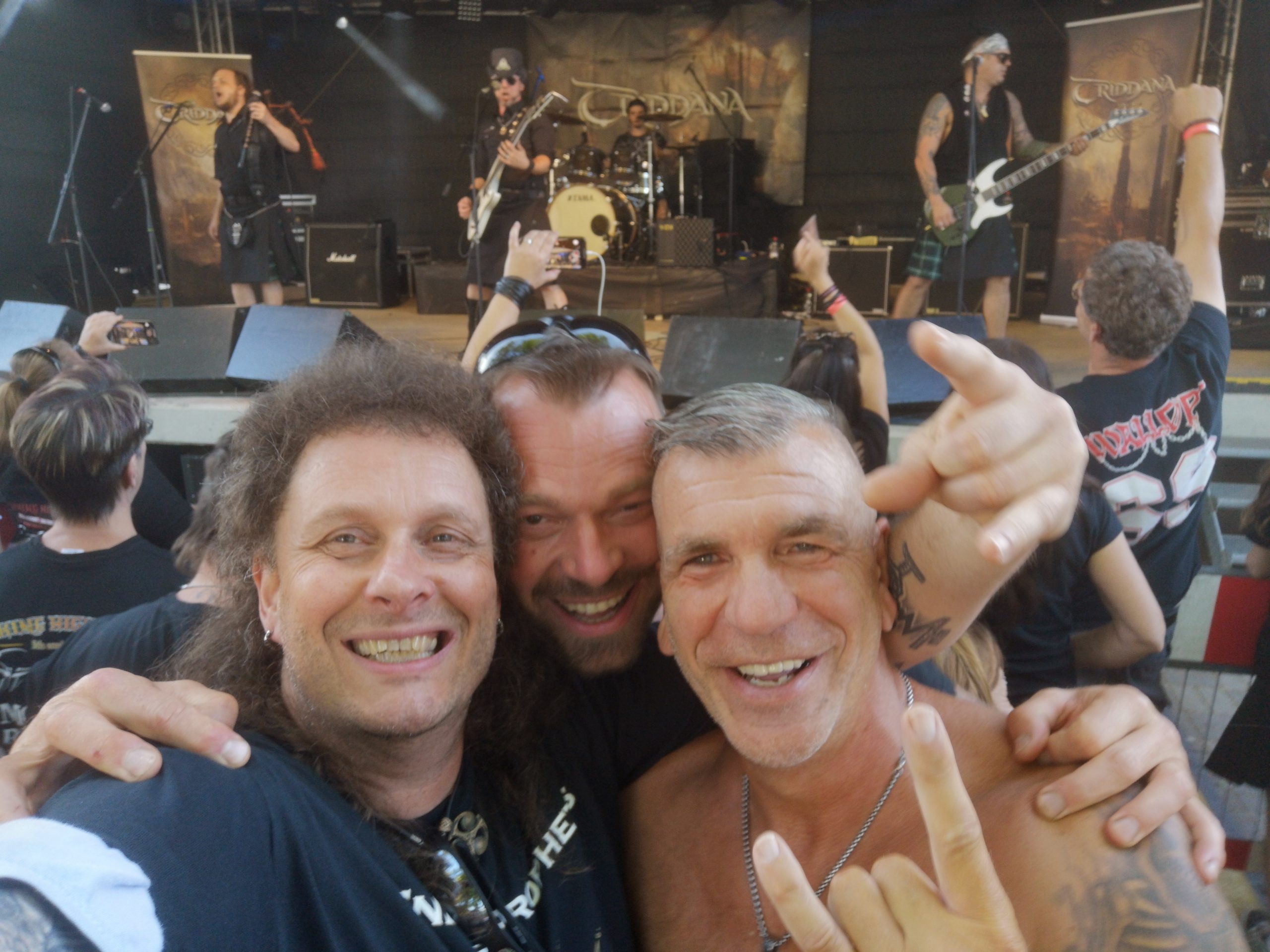 Wie kommt der Dudelsack nach Argentinien? Wie kommen Argentinier nach Weselberg? Auch hier kann die Antwort nur von Festivalchef Luly kommen, der mit TRIDDANA einen Hasen aus dem Hut gezaubert hat, wie man ihn auf Feld, Wald und Wiese selten zu Gesicht bekommt. Nein, keine Mittelalterdudelei (sorry Folkmetaller, aber als einer der ersten, die sich dem Mittelalterrock zugewandt hat, bin ich momentan bis auf wenige Ausnahmen völlig übersättigt und –drüssig), sondern verdammt geiler Hardrock mit… eben einem Dudelsack, was ich nicht einmal von irischen oder schottischen Rockern in der Form vorher gehört hatte. Der Auftritt selbst bot alles, was das Metal Heart begehrt, umgesetzt in einer äußerst coolen Optik und wenn man den Gerüchten im Underground glauben schenkt, so ist die Emigration der Männer nach good old Germoney voll im Gange. Bockstarker Gig!