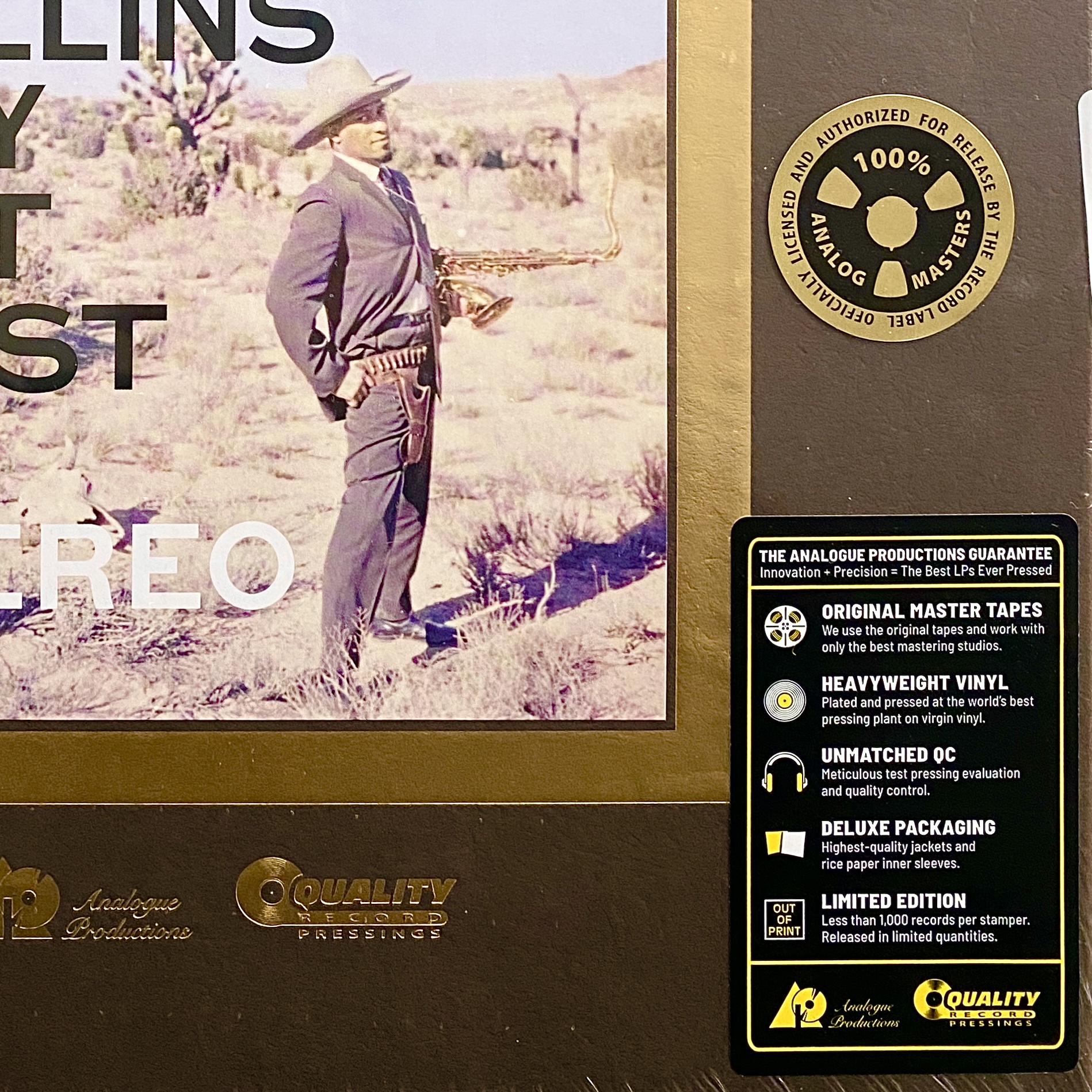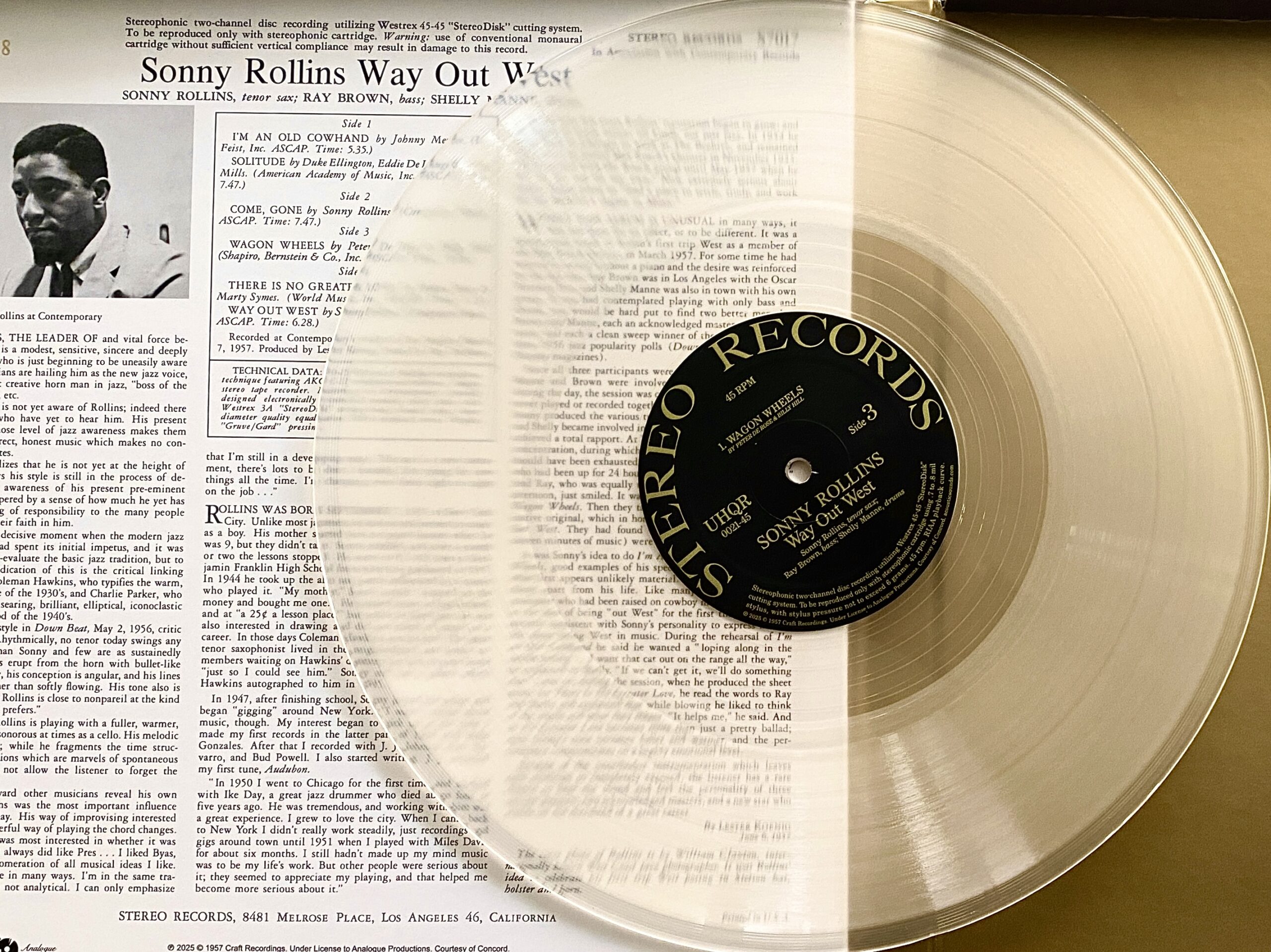 Achtundsechzig Jahre nach diesen legendären Aufnahmen hat ´Way Out West´ eine neue, fast magische Inkarnation gefunden: die UHQR-Vinylneuauflage von “Analogue Productions”. Vier Seiten, 200 Gramm schweres Clarity Vinyl, abgespielt bei 45 RPM – jede Note, jeder Atemzug, jedes minimale Rütteln der Trommeln wird hörbar. Mastered AAA von Bernie Grundman direkt von den originalen Analogbändern, in einer nummerierten Auflage von nur 2.750 Exemplaren. Dazu ein Deluxe-Booklet mit 16 Seiten, das die Geschichte von “Contemporary Records” erzählt und neue Linernotes von John Koenig enthält, Sohn des Labelgründers. Alles verpackt in einem Stoughton Printing Old Style Tip-On Gatefold Jacket mit kratzresistenter, matter Oberfläche – optisch wie akustisch ein Meisterwerk.