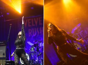 Den Abend eröffneten VELVET RUSH mit vertraut klassischen Hard Rock-Klängen. Kann das Album schon ziemlich gut überzeugen, legte man live noch einmal ein paar Brickets drauf. Die Riffs kamen feurig, der Bass pumpte, zudem hat man mit Basser Tim Black einen geborenen Poser in der Band. Blickfang, wie könnte es anders auch sein, war Sängerin Sandra Lian, die mit ordentlich gesanglicher Power die Stücke sauber abrundete. Leider lieferte man nur sechs Songs, vier vom erwähnten Debüt und zwei Tracks von der im Frühjahr veröffentlichten EP ´Euphonia´. Davon den Titeltrack und ´Fire Spirit´.
