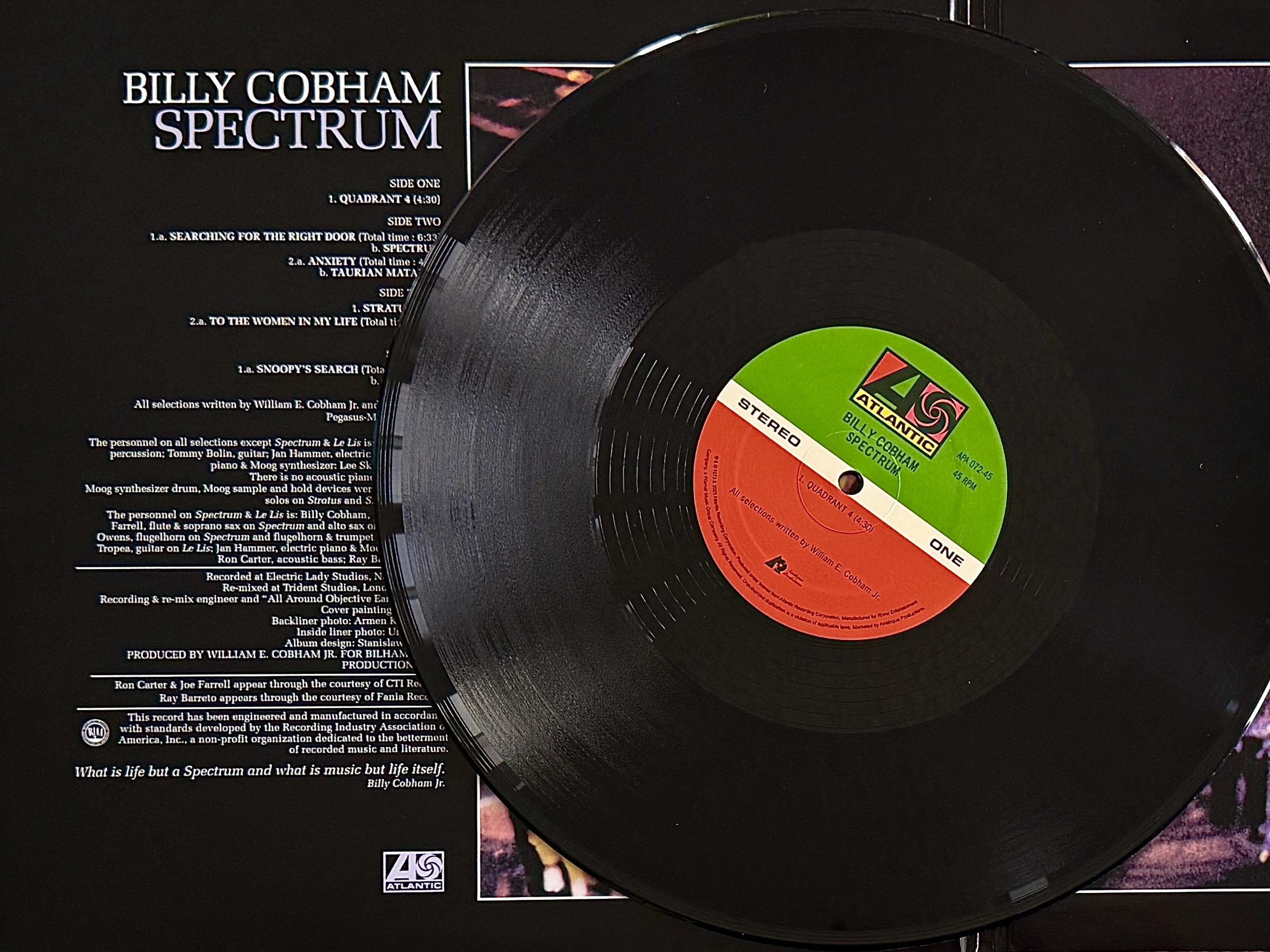 Die aktuelle Neuauflage von ´Spectrum´ durch “Analogue Productions” in der “Atlantic 75 Series” präsentiert das Werk auf 180g Doppel-LP, bei 45 RPM, direkt vom Original-Masterband von Kevin Gray bei “Cohearent Audio” geschnitten. Die unübertroffene Pressung bei “Quality Record Pressings” und das hochwertige “Stoughton Printing”-Gatefold tragen dazu bei, dass die legendäre Energie dieses Albums nun wieder in ihrer ganzen klanglichen Pracht genossen werden kann, so wie sie Billy Cobham und seine Mitstreiter 1973 eingefangen haben.