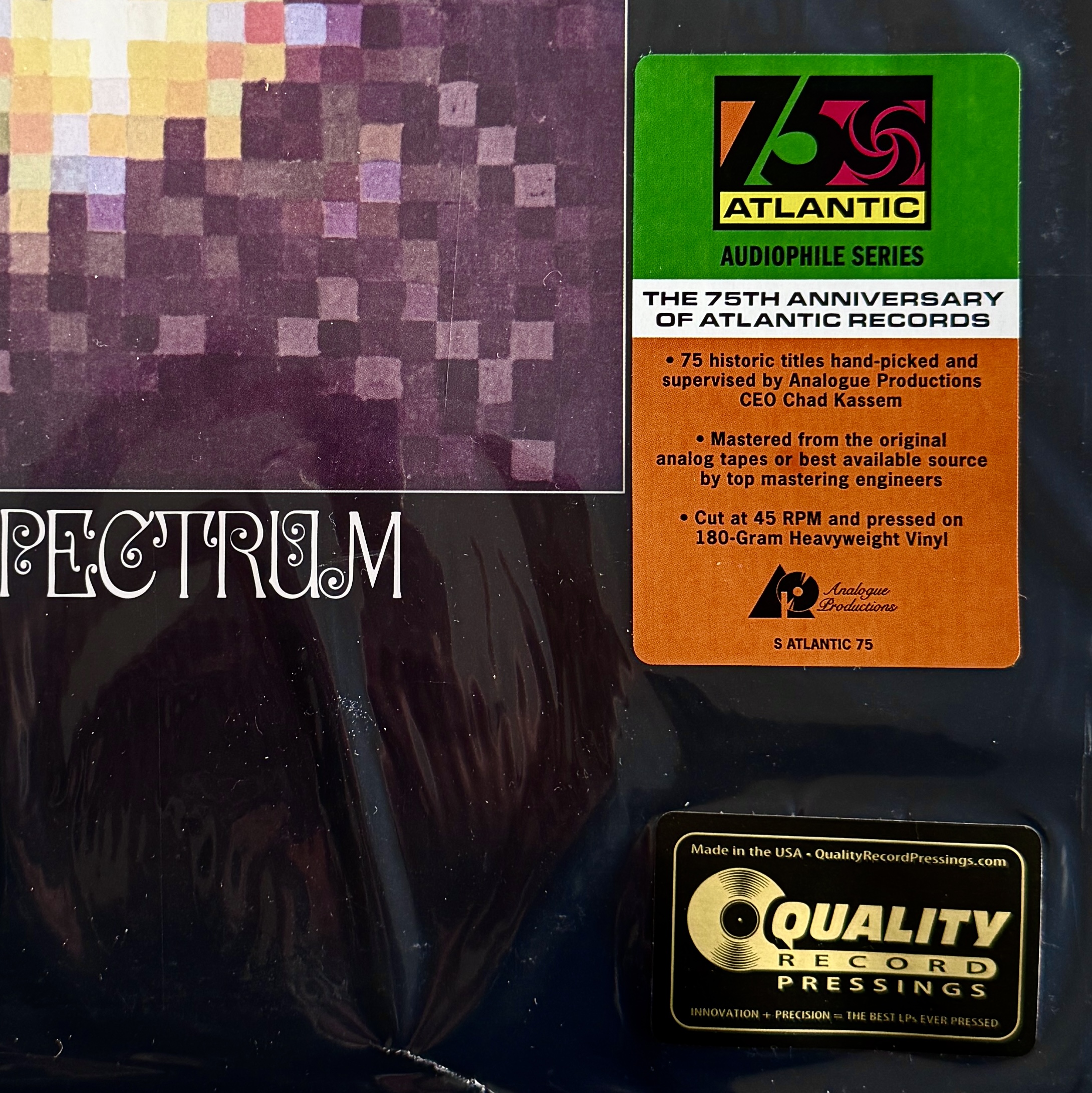 Die aktuelle Neuauflage von ´Spectrum´ durch “Analogue Productions” in der “Atlantic 75 Series” präsentiert das Werk auf 180g Doppel-LP, bei 45 RPM, direkt vom Original-Masterband von Kevin Gray bei “Cohearent Audio” geschnitten. Die unübertroffene Pressung bei “Quality Record Pressings” und das hochwertige “Stoughton Printing”-Gatefold tragen dazu bei, dass die legendäre Energie dieses Albums nun wieder in ihrer ganzen klanglichen Pracht genossen werden kann, so wie sie Billy Cobham und seine Mitstreiter 1973 eingefangen haben.