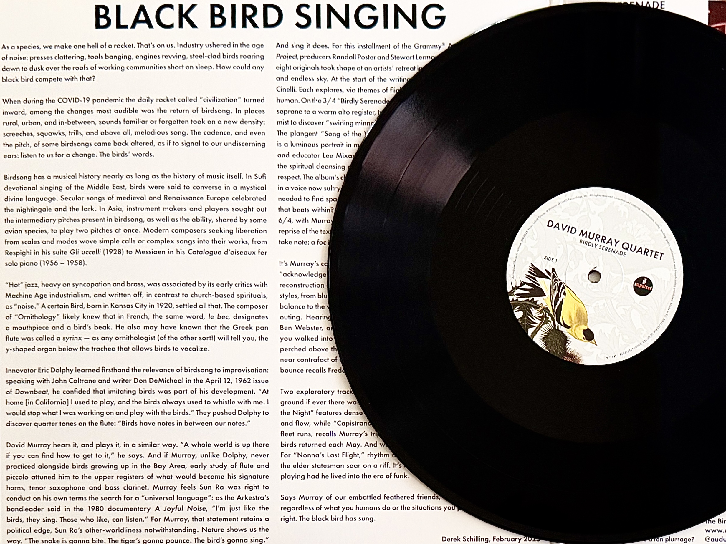David Murray, 70 Jahre jung, prägt seit fünf Jahrzehnten die Jazzwelt, sei es als Tenorsaxofonist, Bassklarinettist, Komponist oder als Bandleader. Seine Musik vereint die Virtuosität der Avantgarde mit entsprechend tiefen Wurzeln in Gospel und Blues, Swing und Hardbop. Auf ´Birdly Serenade´ führt er diese Synthese zu neuen Höhen, inspiriert von der ältesten Musik der Welt: dem Gesang der Vögel. Das Album entstand inmitten der Adirondack Mountains, umgeben von Wäldern und Seen, und wurde im “Van Gelder Studio” aufgenommen, wobei das Mastering von Ryan Smith bei “Sterling Sound” jede Nuance der Instrumente klar und direkt hörbar macht.