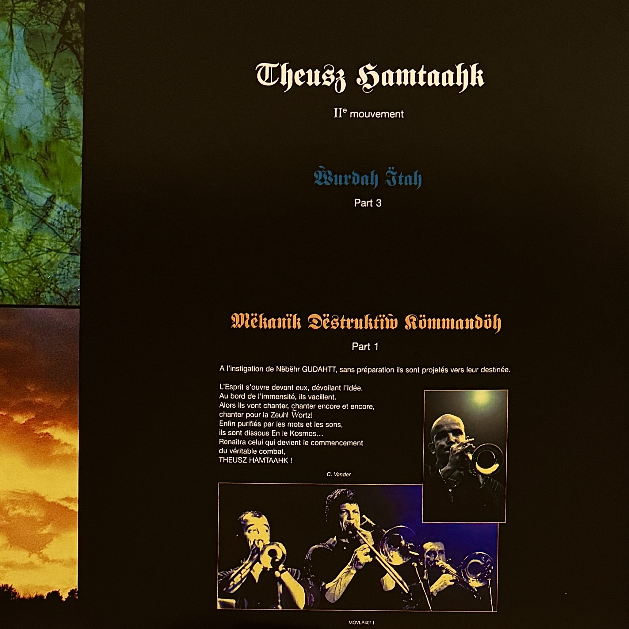 Dass dieses Werk so lange brauchte, um in dieser Form festgehalten zu werden, gehört zur besonderen Geschichte der Band. Während der dritte Teil, ´Mekanïk Destruktïw Kommandöh´, längst als Klassiker des progressiven Rock gilt, waren die beiden ersten Kapitel nur fragmentarisch oder in reduzierten Fassungen erhältlich. Erst im „Trianon“ erfüllte Bandgründer Christian Vander sein jahrzehntelanges Versprechen, die gesamte Saga in der richtigen Reihenfolge und mit großer Besetzung aufzuführen.