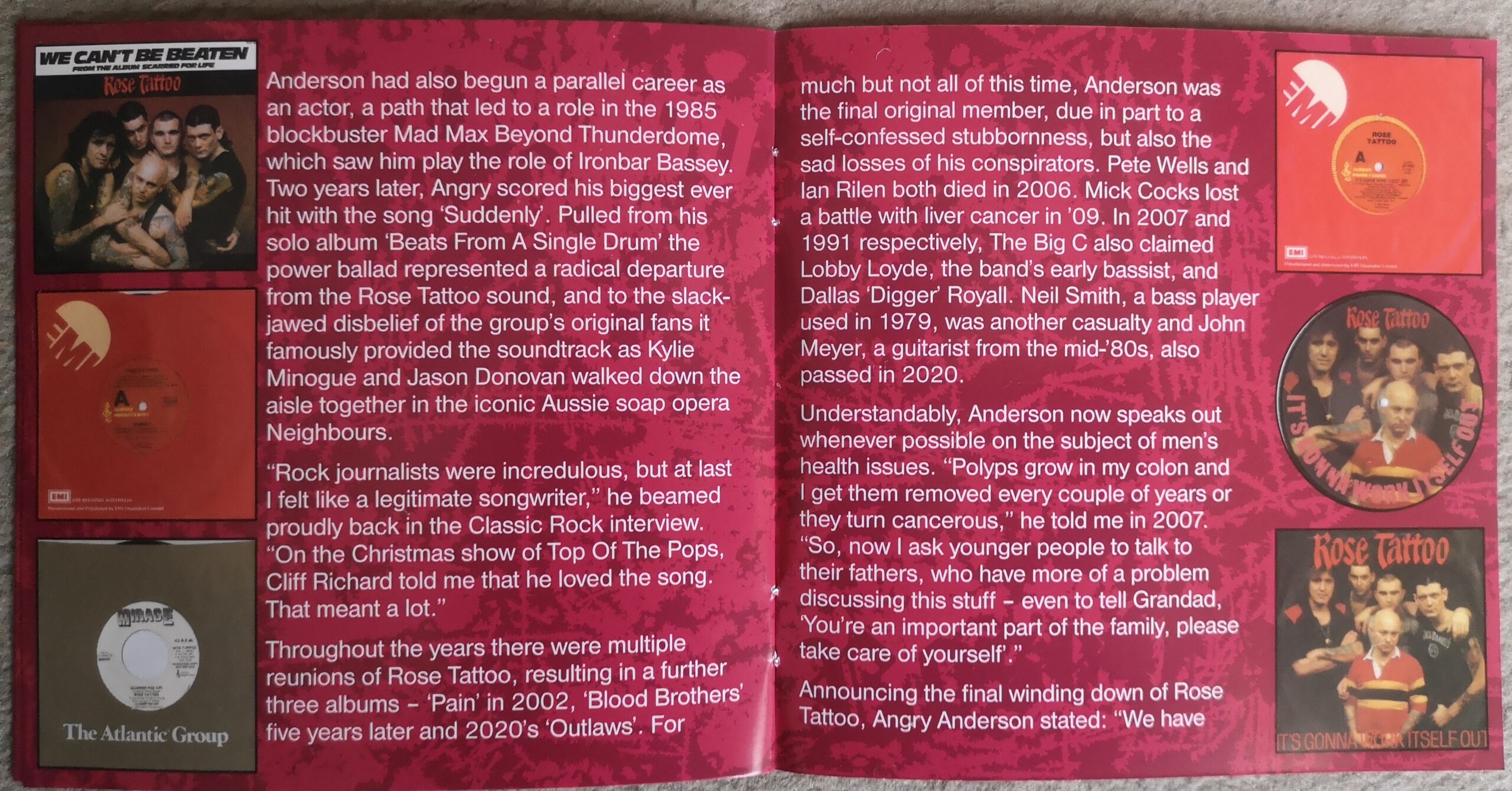 Dass die ersten drei ROSE TATTOO-Alben Klassiker sind, ist unbestritten. Sie sind Teil der Hard Rock-DNA Australiens und haben textlich den damaligen Zeitgeist mehr eingefangen als alle anderen Bands. Mit Bandleader Angry Anderson kam zudem ein Sänger in der Szene an, der extremer nicht sein konnte und dessen Status bis heute ungebrochen ist. Desweiteren besetzt die Band einen traurigen Rekord. In keiner anderen australischen Band sind so viele Originalmitglieder an Krebs gestorben wie in den Reihen von ROSE TATTOO.